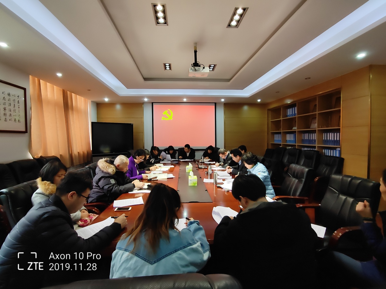 11月28日上午,xvideos 党支部召开“不忘初心、牢记使命”主题教育再深入学习活动。党支部副书记赵华荣同志主持会议,组织大家学习了《关于做好“不忘初心、牢记使命”主题教育有关工作的通知》、《中国共产党第十九届中央委员会第四次全体会议文件汇编》以及《中共中央关于坚持和完善中国特色社会主义制度、推进国家治理体系和治理能力现代化若干重大问题的决定》等文件。