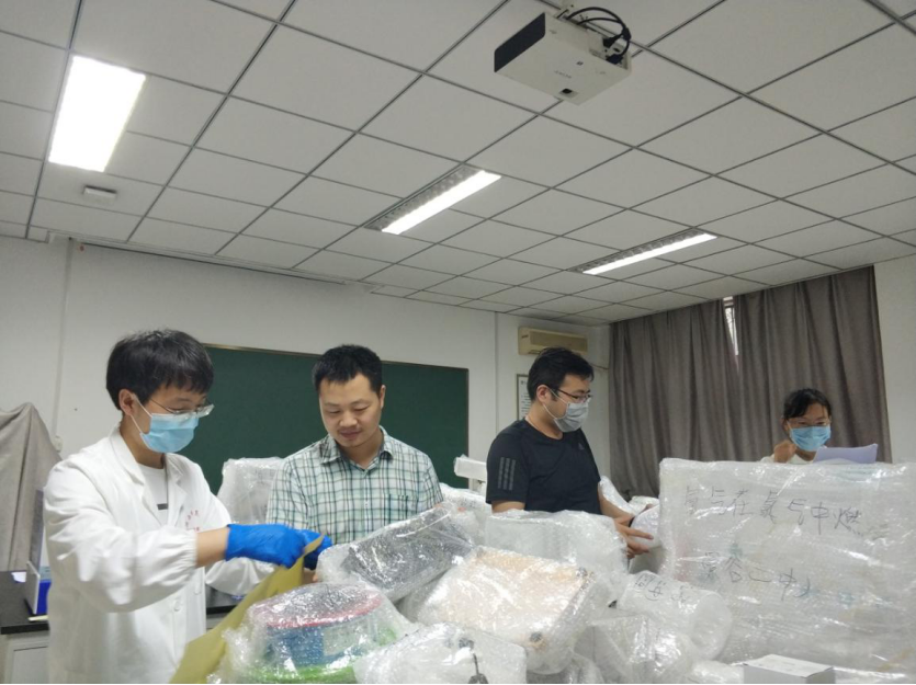 中心老师们为扶贫仪器精心打包