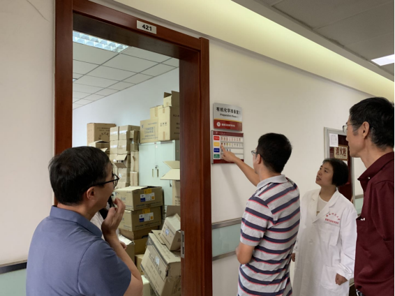 此次检查重点围绕开课前实验室准备情况、疫情防控准备以及实验室安全防护工作等方面展开,按照“全过程、全要素、全覆盖”的原则,陈主任和相关人员逐一落实各实验室开课前的实验准备,对各类实验室及相关场所的消毒工作及防疫用品的配备、危险化学品的使用、储存、处置等环节展开了全方位、无死角的检查,排查各类安全隐患。在检查过程中,陈主任、苏主任就发现的问题和学科负责人共同商讨解决方案,并对存在的问题现场安排部署,要求相关负责人限时整改。