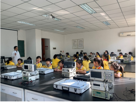 同时,为了提高小学生的安全意识,拓展小学生的科学视野,本次科普日活动还专门设计了参观大学本科电子电工实验室环节。由中心张海涛老师为小学生讲解了生活中的电压分级和用电安全,并科普了大唐不夜城喊泉的工作原理,以及芯片发展的前世今生。讲解深入浅出,引人入胜。