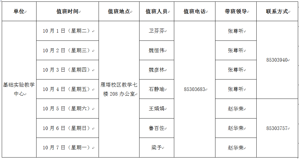 值班地点:雁塔校区教学七楼208室