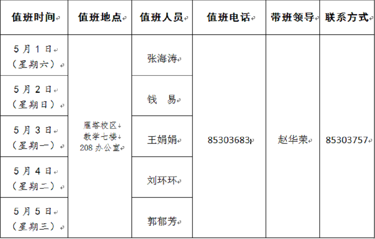 2021年劳动节值班安排表