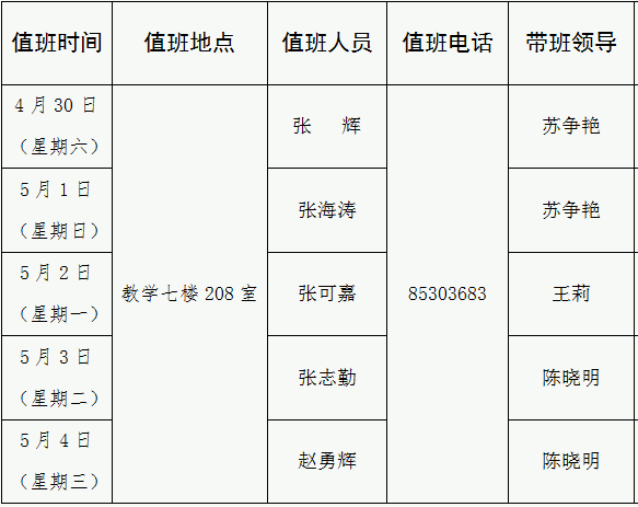4.放假期间严格遵守学校疫情防控指挥部《关于做好“五一”假期校园疫情防控工作的通知》,全体师生员工“五一”假期不出省,非必要不跨市流动,不前往中、高风险地区及有本土病例报告的地区。