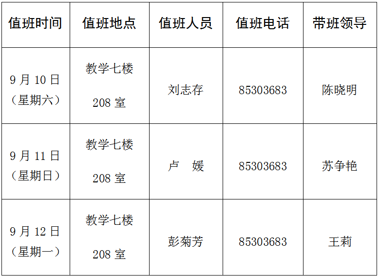 2.值班期间如遇有紧急、重要事项或突发事件,应立即联系带班领导并向学校总值班室(校务楼110室,85310005)报告并妥善处置;