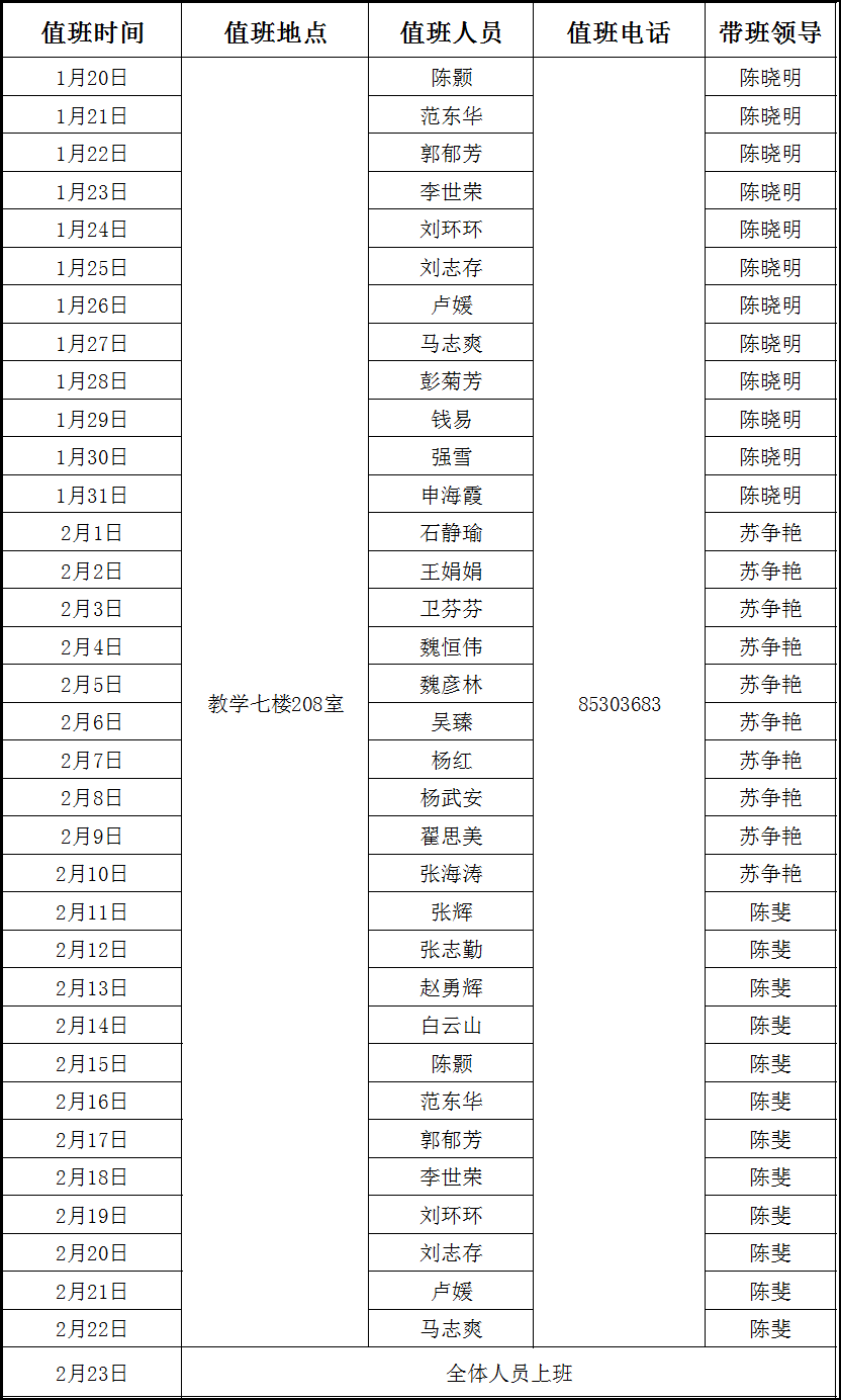 2.值班期间如遇有紧急、重要事项或突发事件,应立即联系带班领导并向学校总值班室(校务楼110室,85310005)报告并妥善处置;