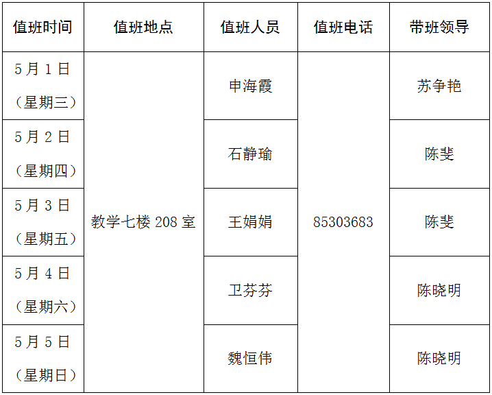 2.上班期间如遇有紧急、重要事项或突发事件,应立即联系带班领导并向学校总值班室(校务楼110室,85310005)报告并妥善处置;