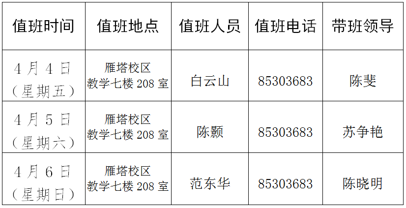 2025年清明节值班安排