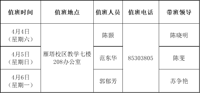 2026年清明节值班安排